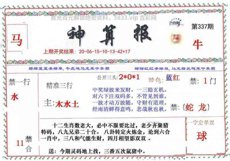 336期:绝杀三肖【马鸡蛇】开牛17准